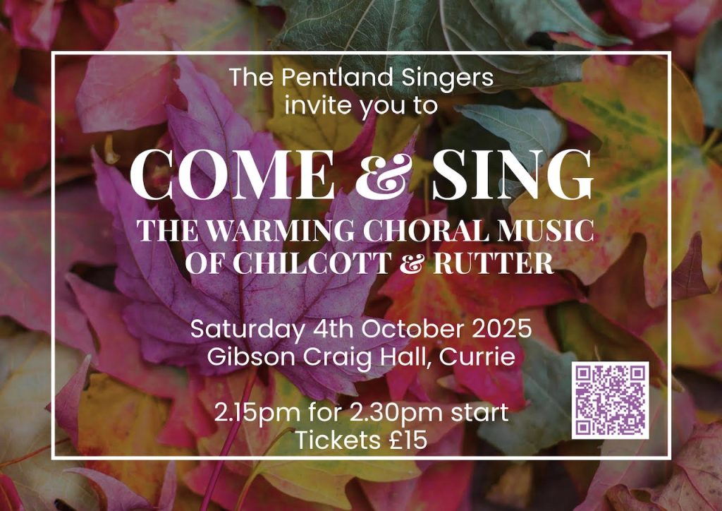 Pentland Singers invite you to their Christmas concert which will be held on the 13th and 14th of December at Balerno High School at 7.30pm. The theme is a celebration of beautiful Christmas music across the centuries. Details of how to obtain tickets can be found on the ticket section of the website.
